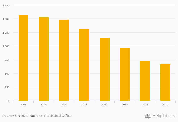 Historically, juveniles held in prisons, penal or correctional institutions in Spain reached an all time high of 1,568 persons in 2003 and an all time low of 669 persons in 2015.
