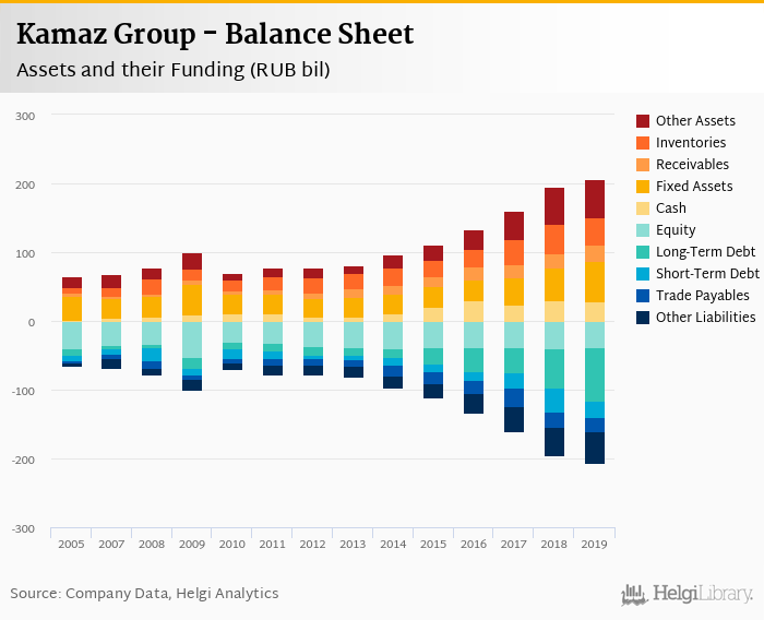 Kamaz Group's total assets reached RUB 206 bil at the end of 2019, up 5.79% compared to the previous year.