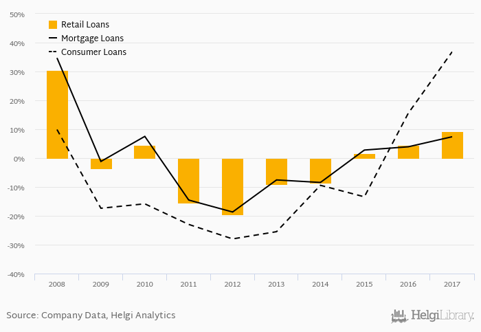 Overall, retail loans accounted for 39.4% of the bank's loan book at the end of 2017.