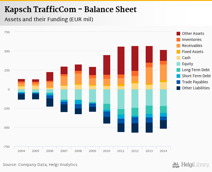 Kapsch TrafficCom's total assets reached EUR 516 mil at the end of 2014, down 9.04% compared to the previous year.