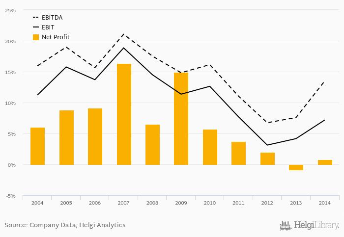 On the operating level, the EBITDA margin reached 13.5% and EBIT amounted to 7.18% of sales in 2014.