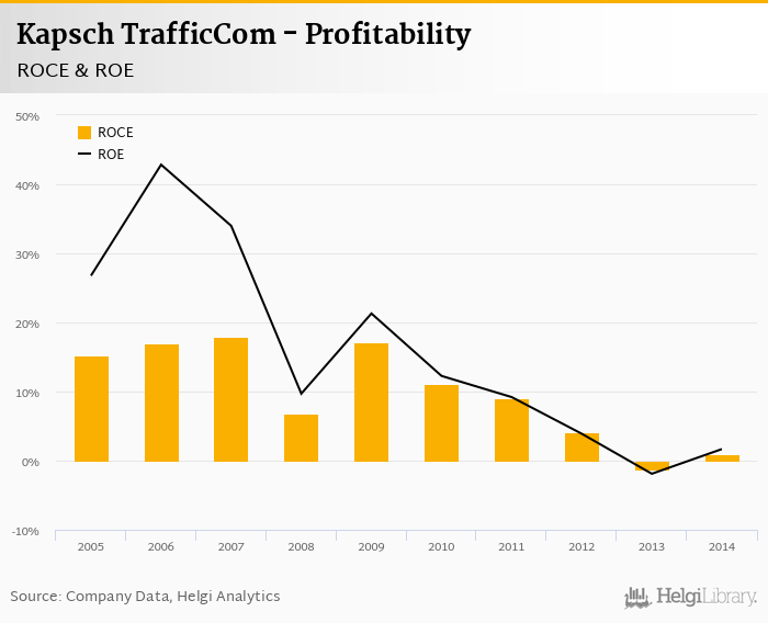 As far as Kapsch TrafficCom's peers are concerned, Austria Technologie & Systemtechnik generated ROE of 13.9% and ROCE of 9.19% in 2014. Ericsson Nikola Tesla's profitability reached 17.4% and 22.1%, respectively. Austrian Post operated with 20.9% and 14.4% returns in 2014.