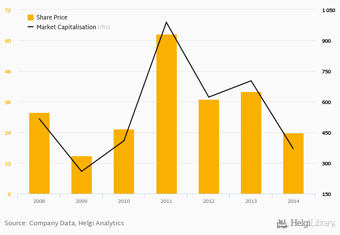 Historically, between 2008 and 2014, the Kapsch TrafficCom’s stock price reached a high of EUR 62.5 in 2011 and a low of EUR 14.8 in 2009.