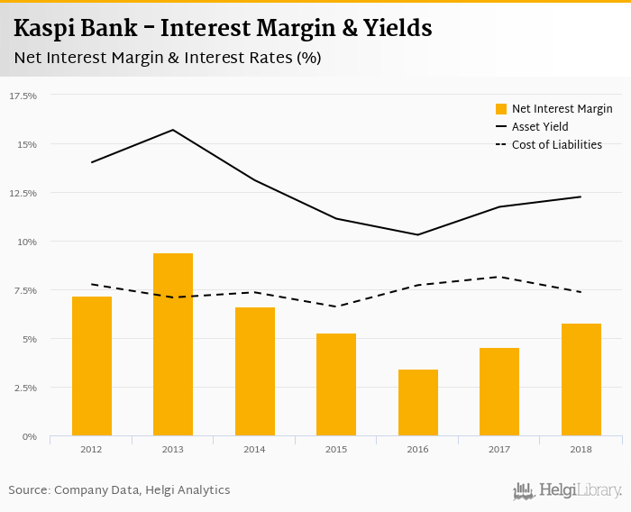 Kaspi Bank's net interest margin amounted to 5.78% in 2018, up from 4.52% compared to the previous year.