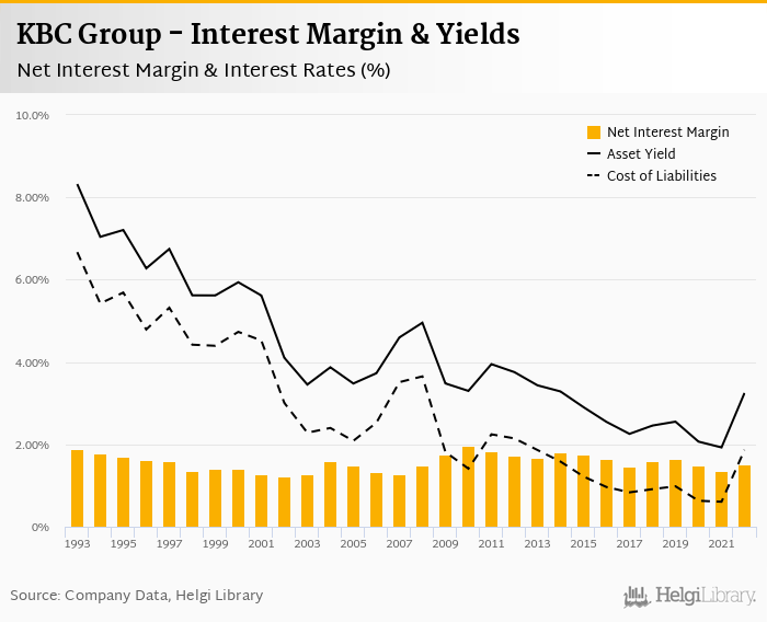 KBC Group's net interest margin amounted to 1.50% in 2022, up from 1.36% compared to the previous year.