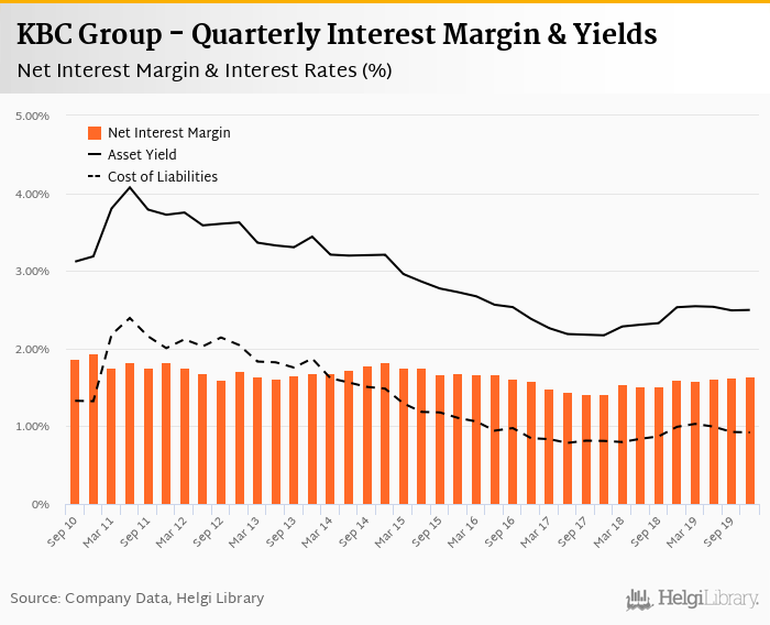 KBC Group's net interest margin amounted to 1.64% in the fourth quarter of 2019, up from 1.63% when compared to the previous quarter.