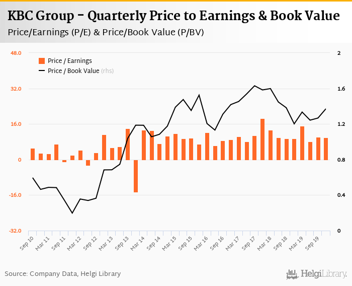 KBC Group stock traded at 67.3 per share at the end fourth quarter of 2019 implying a market capitalization of USD 30,402 mil.