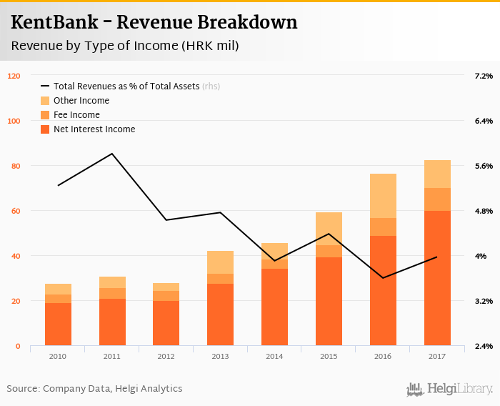 KentBank generated total banking revenues of HRK 82.5 mil in 2017, up 7.8% compared to the previous year.