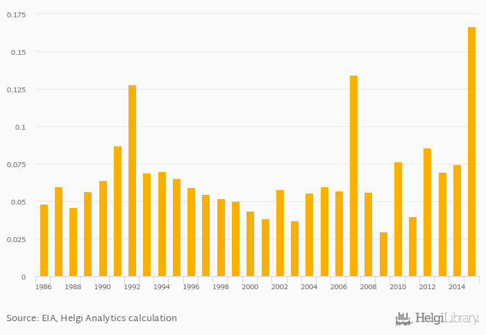 Kerosene consumption as a share of worldwide consumption rose 124% to 0.167% in Honduras in 2015, according to EIA.