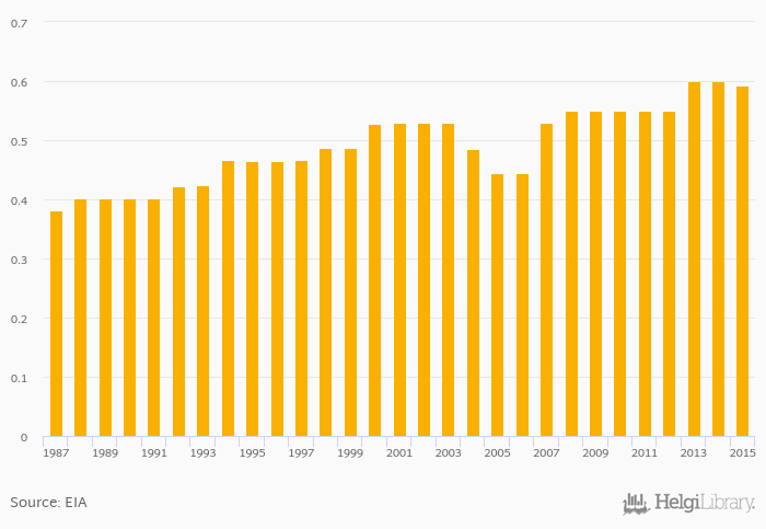Kerosene consumption fell 1.17% to 0.593 '000 bpd in Central African Republic in 2015, according to EIA.