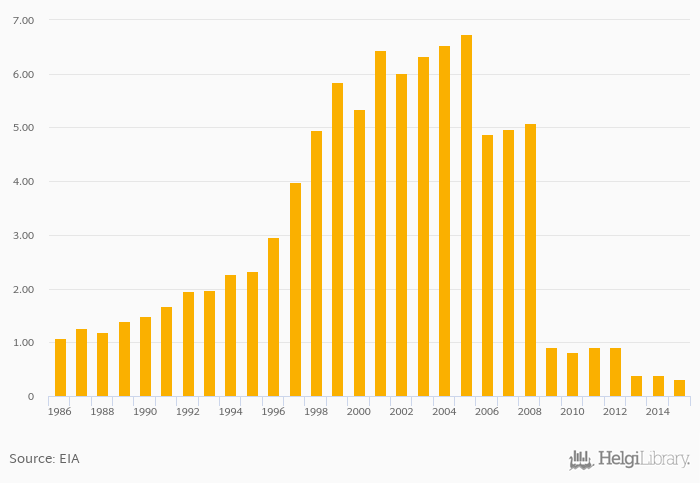 Historically, kerosene consumption in Nepal reached an all time high of 6.73 '000 bpd in 2005 and an all time low of 0.318 '000 bpd in 2015. When compared to Nepal's main peers, kerosene consumption in Bangladesh amounted to 6.14 '000 bpd, 0.085 '000 bpd in Bhutan, 25.3 '000 bpd in China and 160 '000 bpd in India in 2015.