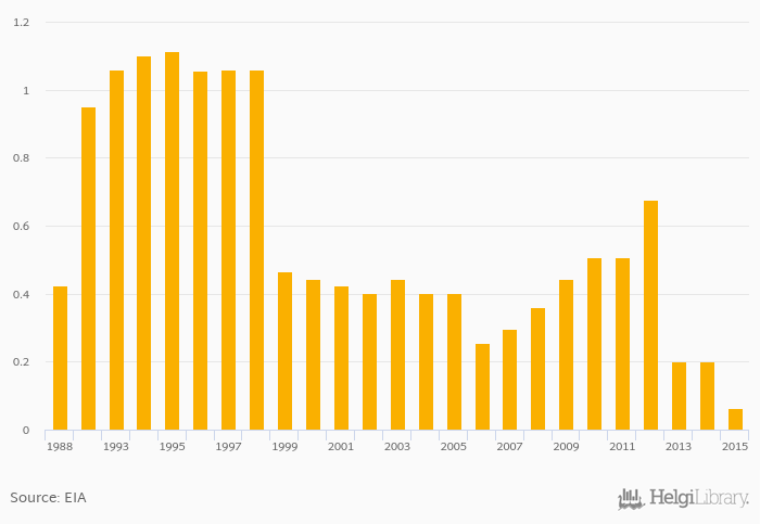 Kerosene consumption fell 68.2% to 0.064 '000 bpd in Congo in 2015, according to EIA.