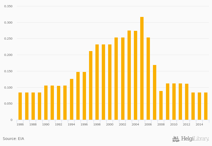 Kerosene consumption rose 0% to 0.085 '000 bpd in Bhutan in 2015, according to EIA.