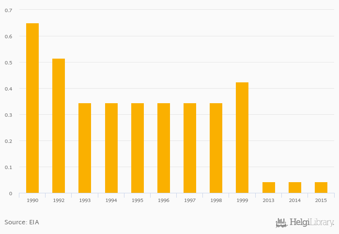 Kerosene consumption rose 0% to 0.042 '000 bpd in Namibia in 2015, according to EIA.