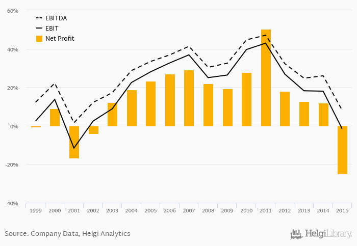 On the operating level, the EBITDA margin reached 7.92% and EBIT amounted to -1.79% of sales in 2015.