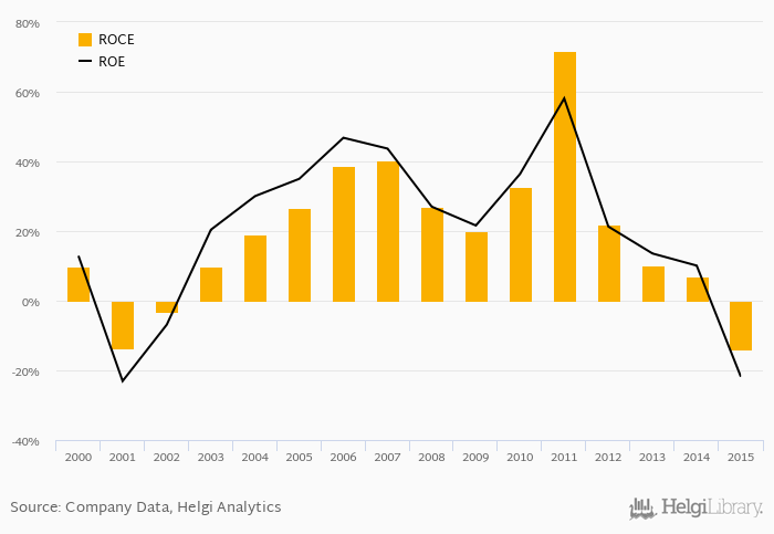 The result implies a return on equity of -21.8% and a return on invested capital of -14.0% in 2015. That is compared to an average of 16.2% and 19.4% over the last five years.
