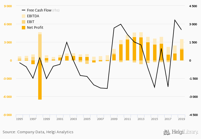 In the last five years, the company generated free cash flow of KRW 2,346 bil. That compares to a cumulative net profit of KRW 9,336 bil in the same period.