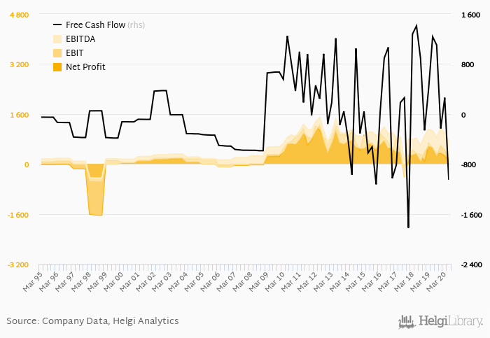 In the last five years, the company generated free cash flow of KRW 2,136 bil. That compares to a cumulative net profit of KRW 8,078 bil in the same period.