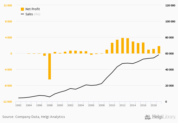 Historically, between 1992 and 2019, the company’s net profit reached a high of KRW 3,865 bil in 2012 and a low of KRW -6,497 bil in 1998. Over the last decade the firm's net profit increased by an average of 6.43% a year.