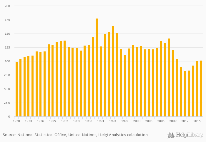 | Bulgaria | persons | 105 | 89.7 | 82.8 | 83.5 | 92.6 | ||||||||||||||||