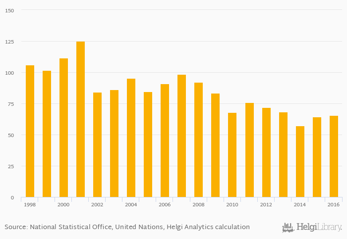 | Poland | persons | 102 | 110 | 93.9 | 88.3 | 84.4 | ||||||||||||||||