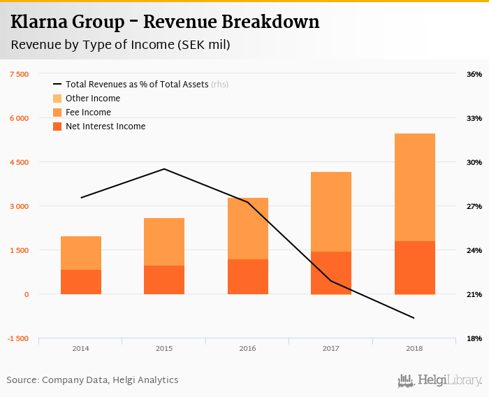 Klarna Group generated total banking revenues of SEK 5,450 mil in 2018, up 31.1% compared to the previous year.