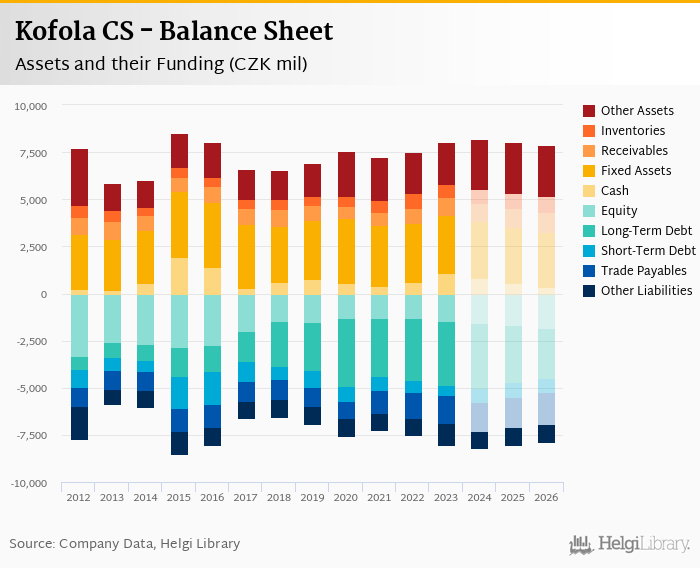 Kofola CS's total assets reached CZK 7,857 mil at the end of 2026, down 2.08% compared to the previous year.