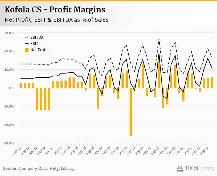Kofola CS made a net profit of CZK 139 mil with revenues of CZK 2,319 mil in 4Q2023, up by 2.00% and up by 28.0%, respectively, compared to the previous year.