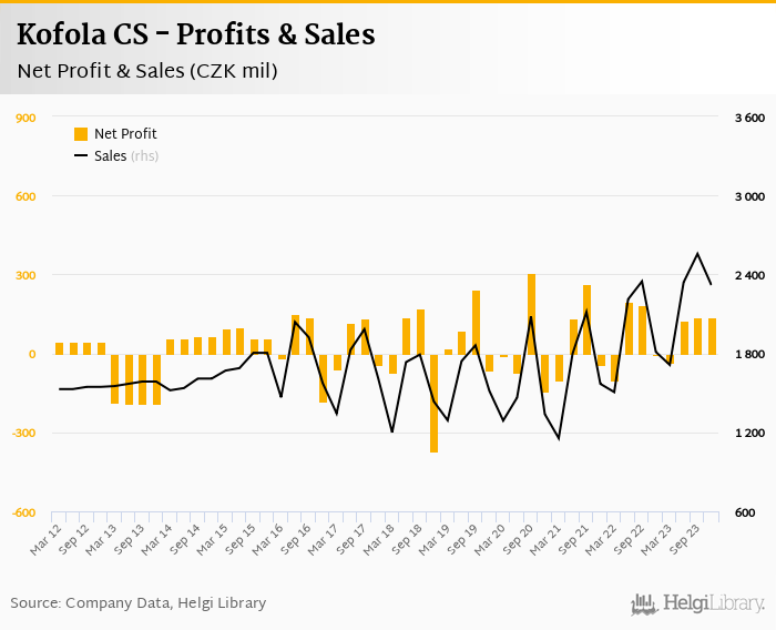 Kofola CS made a net profit of CZK 139 mil in 4Q2023, up 2% compared to the previous year. Total sales reached CZK 2,319 mil, which is up 28% when compared to the previous year.