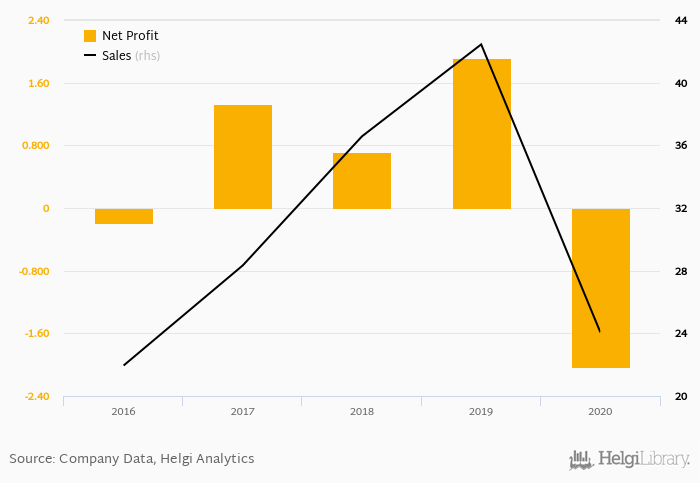 Sales have grown by 0% a year on average since 2015. They reached a high of CZK 42.4 mil in 2019 and a low of CZK 21.9 mil in 2016.