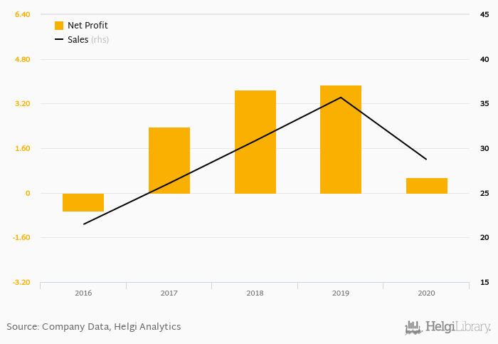 Sales have grown by 0% a year on average since 2015. They reached a high of CZK 35.7 mil in 2019 and a low of CZK 21.5 mil in 2016.