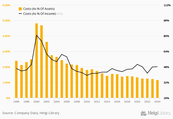 When compared to total assets, bank's cost amounted to 1.16% in 2024, down from 1.23% a year earlier.