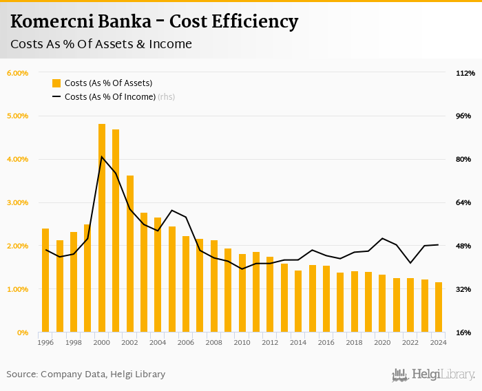 Komercni Banka's cost to income ratio reached 48.2% in 2024, up from 47.8% compared to the previous year.
