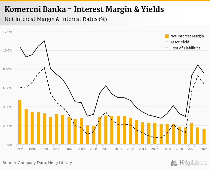 Komercni Banka's net interest margin amounted to 1.66% in 2024, down from 1.81% compared to the previous year.