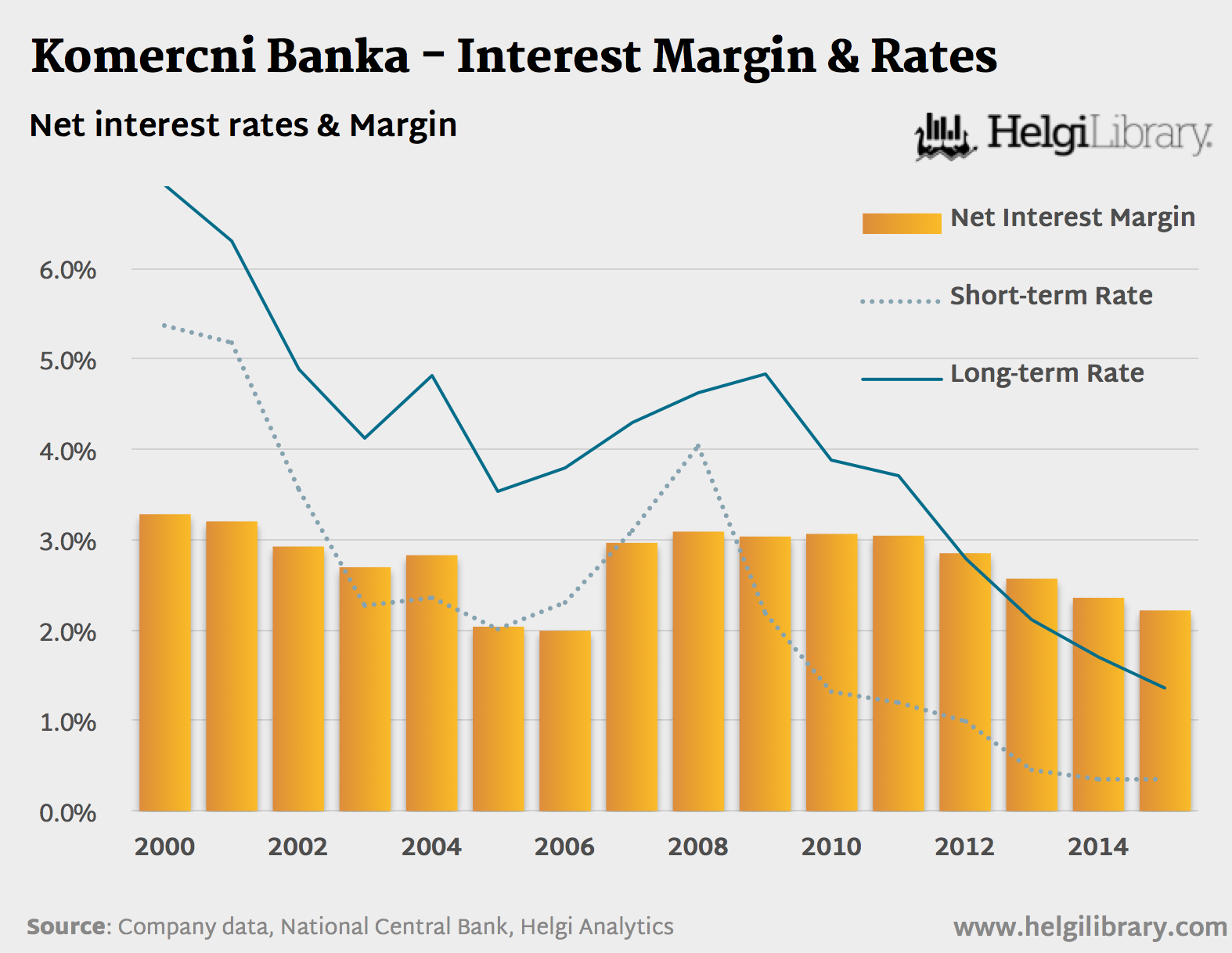 Komercni Banka - Interest Rates & Margin (2000-2015)