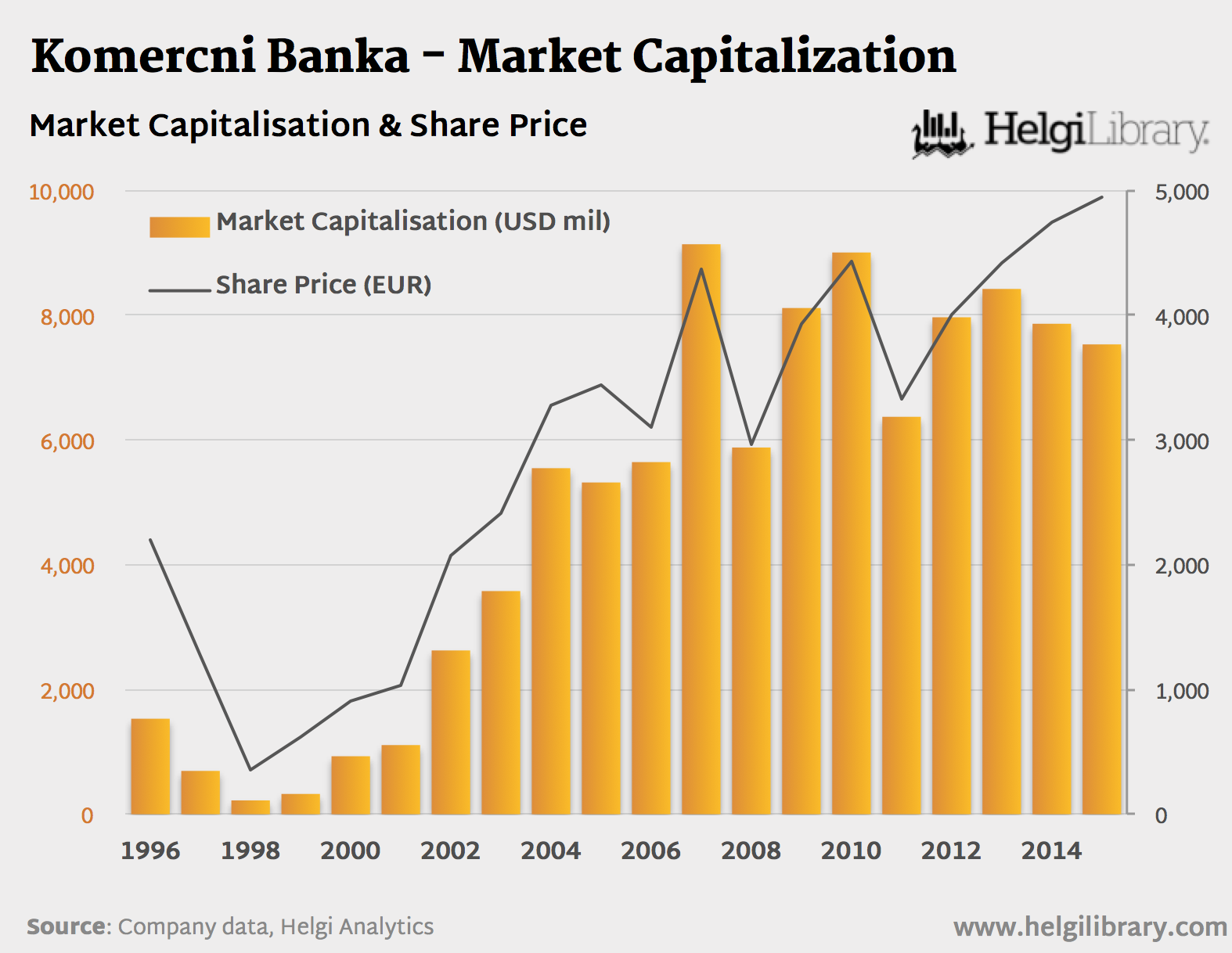 Komercni Banka - Market Capitalization (1996-2015)