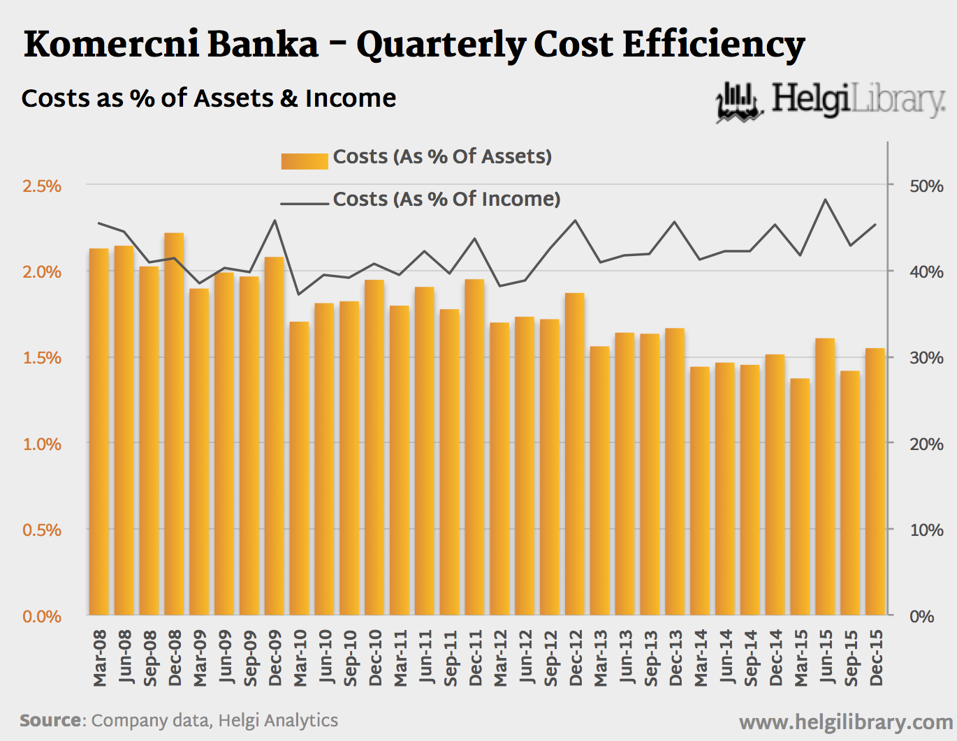 Komercni Banka - Quarterly Cost Efficiency (Mar08-Dec15)