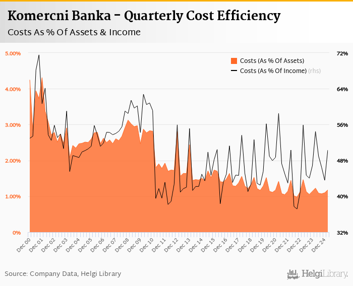 Komercni Banka's cost to income ratio reached 50.3% in the first quarter of 2025, up from 43.6% when compared to the previous quarter.