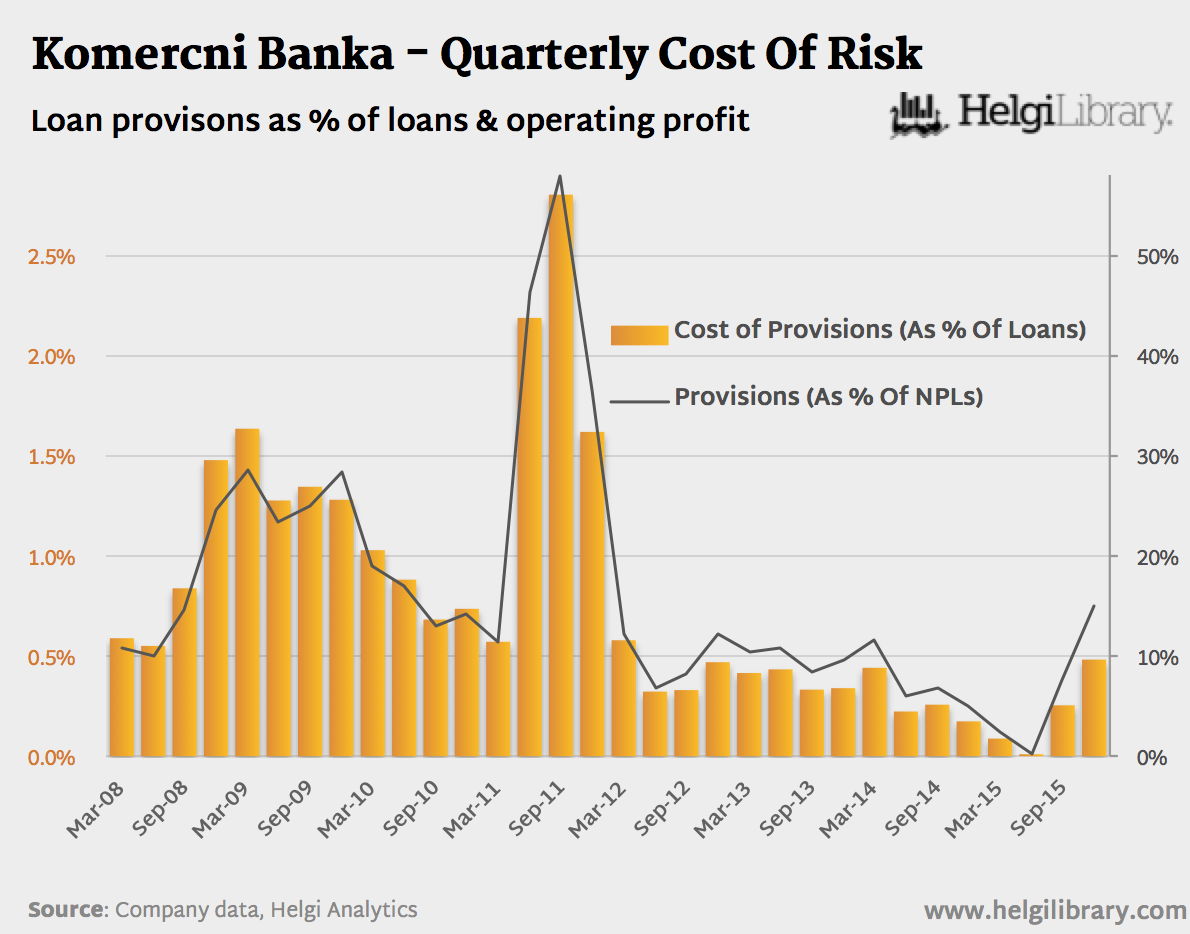 The bank is well capitalised (with a capital adequacy ratio at nearly 16% at the end of 2015) and funded (with loans to deposits at 80%) and has been lending cautiously since its privatisation (non-performing loans accounted for only 4.2% of the total at the end of 2015).