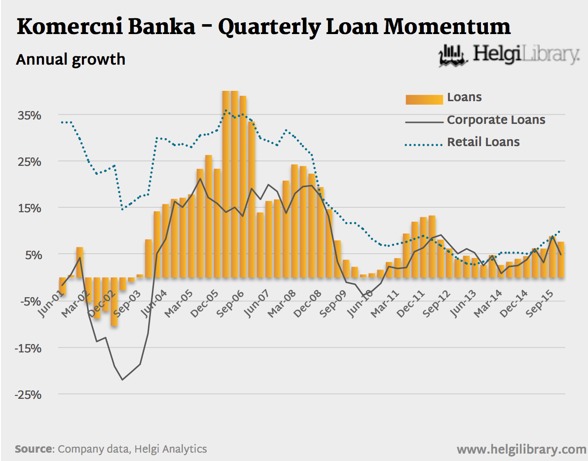 Komercni banka - Quarterly Loan Growth (Jun01-Dec15)