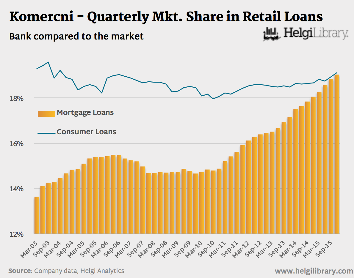 Komercni banka - Quarterly Market Share in Retail Loans (Mar03-Dec15)