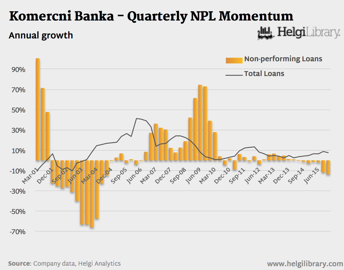 Komercni banka - Quarterly NPL Momentum (Mar01-Dec15)