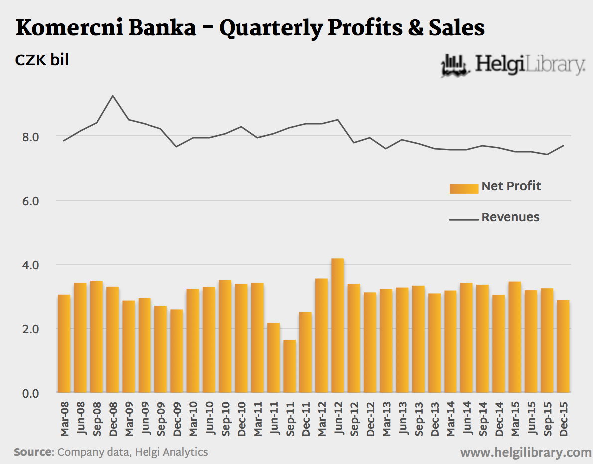 Komercni Banka - Quarterly Profits & Sales (Mar08-Dec15)