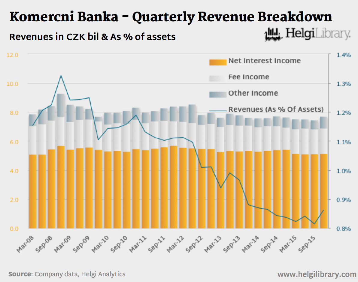 Komercni Banka - Quarterly Revenue Breakdown (Mar03-Dec15)