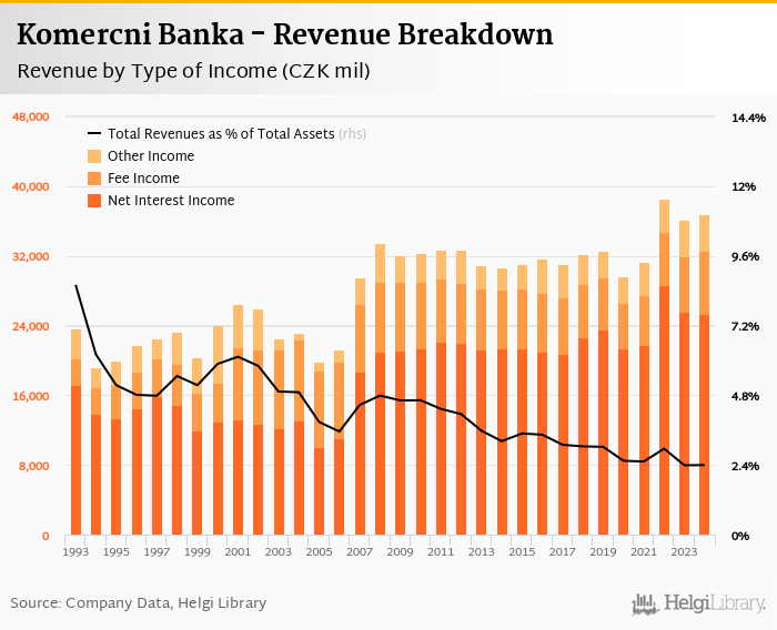 Komercni Banka generated total banking revenues of CZK 36,786 mil in 2024, up 1.62% compared to the previous year.