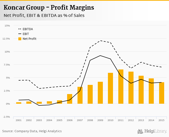 On the operating level, the EBITDA margin reached 6.99% and EBIT amounted to 4.05% of sales in 2015.