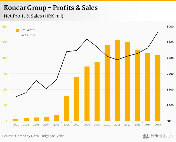 Koncar Group made a net profit of HRK 125 mil in 2015, down 2.98% compared to the previous year. Total sales reached HRK 3,049 mil, which is up 15.1% when compared to the previous year.