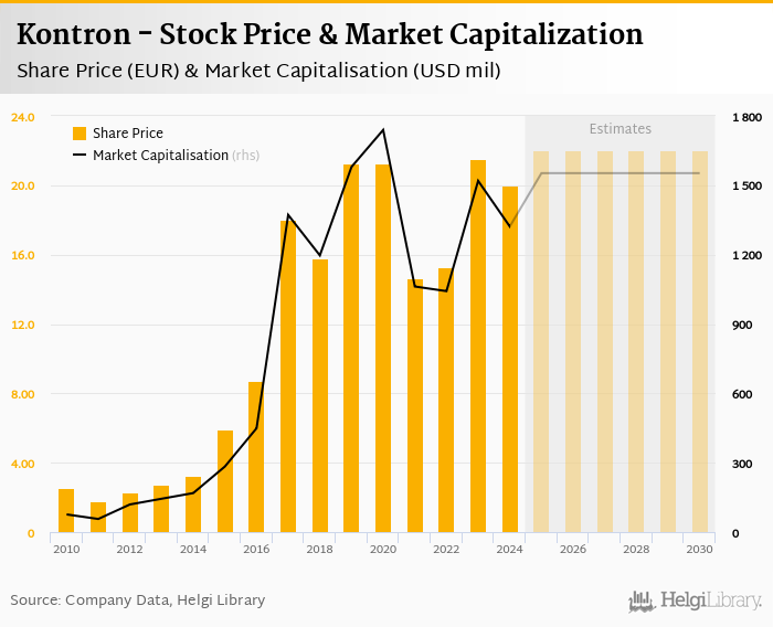 Kontron stock traded at EUR 20.0 per share at the end 2024 implying a market capitalization of USD 1,322 mil.