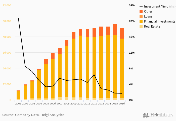 Financial investments formed 82.3% of total investment portfolio at the end of 2016. Loans represented 0.000% and real estate assets 2.83% of total investments at the year-end.