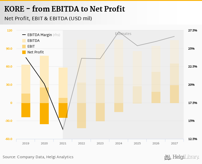 KORE made a net profit of USD -24.5 mil with revenues of USD 248 mil in 2021, up by 30.5% and up by 16.1%, respectively, compared to the previous year. This translates into a net margin of -9.85%.